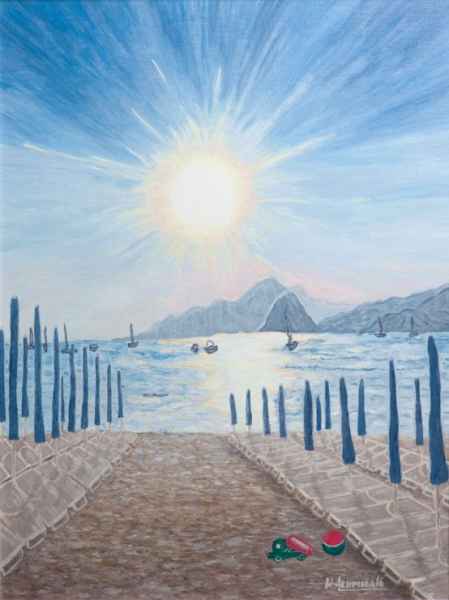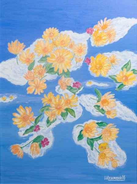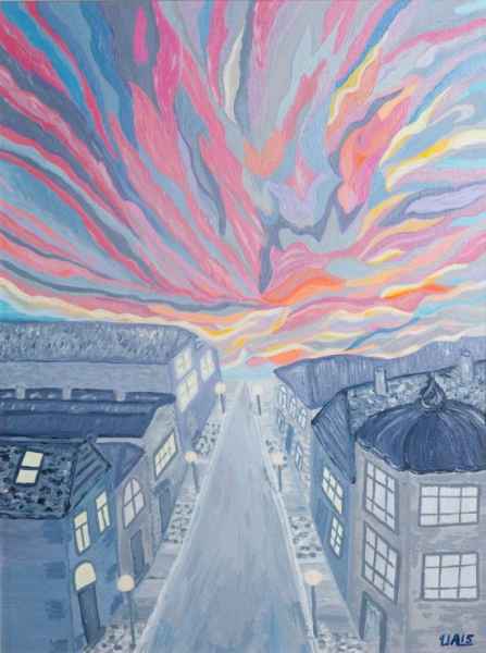 I am drawn and struck by the sky. Its variability is similar to the variability of the world and our lives, only much more dynamic. Drawn by clouds or permeated by the sun, with dark night violet or bright day blue, it is always above us and next to us. Mixed with sunlight, the colors of the sky often surpass the colors of gray cities and everyday life. We look at the sky in moments of happiness and anxiety, in admiration and in supplication. And we always find some signs of change. The sky is reflected and reflective. The reflection of the sky on the surface of the water enchants with its perfection and surprises with new unexpected images. The reflection of the world around us, our feelings and destiny in the sky is a field for the artist's boundless creative imagination. That's why the name of my first exhibition is "I draw the sky ...".