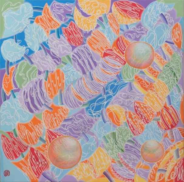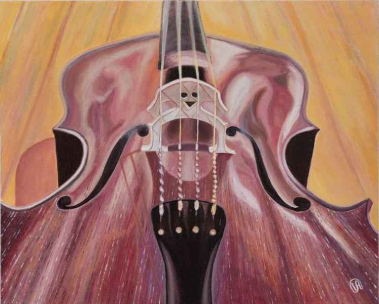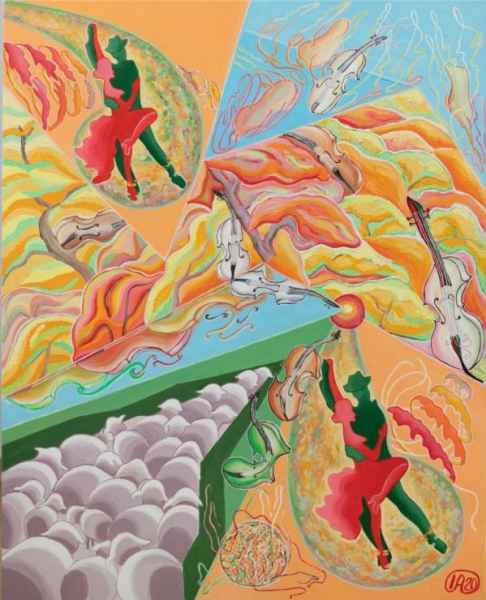 I paint music ... I try to give my own individual visual interpretation of different pieces of music. While working on the paintings, I first divided the piece of music into several components (which do not always coincide with the theoretical musical construction). Each component appeared as a separate element of the visual composition. Then I determined the color scheme and compositional structure of each element. My instruments are colors, shapes, lines that reflect tonality, strength of sound, or whole musical phrases. In some works (Chopin's First Concerto for Piano and Orchestra), color compositions of various shapes, together with variations of complex figures with numerous bends in the language of abstraction, convey musical phrases that add up to a single piece, reflecting its mood and intonation. In other works, symbolic figurative images appear (ROMEO AND JULIET), which complement the abstract composition, making it possible to more accurately convey the drama of a musical work. And in some works (THE SEASONS IN BUYNES AIRES) figurative compositions dominate, which, through associations with images of nature or the city, help to reflect the spirit and character of the musical creation.