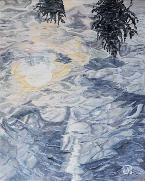 The diptych “A pond outside the window” summarizes the author’s thoughts and poses a question to the viewer. What do we want? To look through the unbroken window on the clean surface of the pond with t sun and clouds reflections? Or to see the garbage floating on the water through the broken window? This is our choice. The author's call is clear: Let's glass and paint our windows, turning them into the keepers of peace, goodness and decency.
