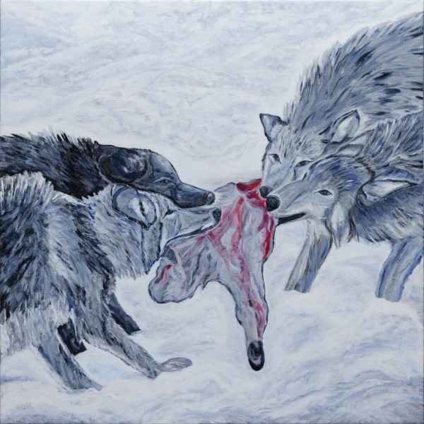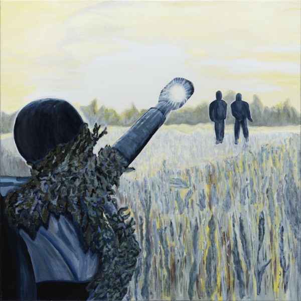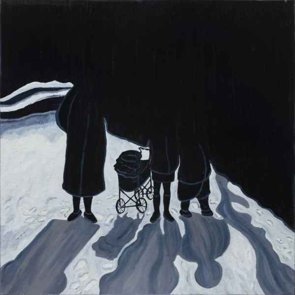 The psychological drama of images and stories is supported by general gray-white color of the works and graphic (silhouette) lines, that merge together in a uniform composition with attractive contrasting accents and combinations of dynamism and calmness. Human figures depicted as graphically-contrasting planes, are clearly set against the background of canvases. In this way the author achieves the monumentality of the composition, while the silhouette modeling of the forms adds an emotional tension.